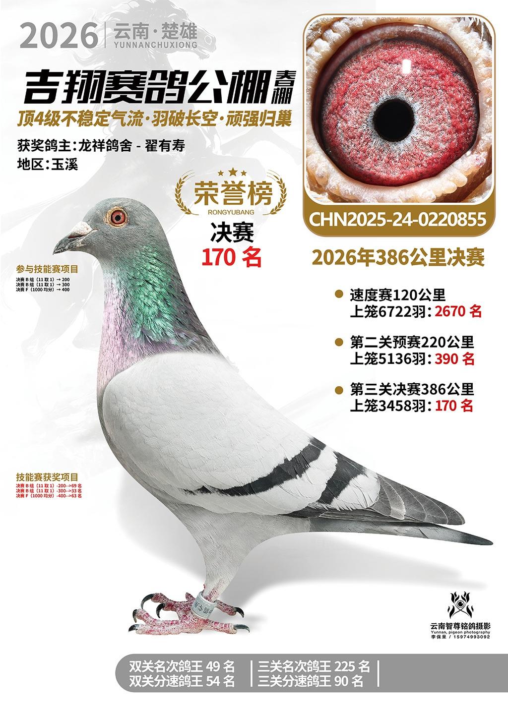 楚雄吉翔公棚(春棚)2026年386公里决赛获奖鸽欣赏