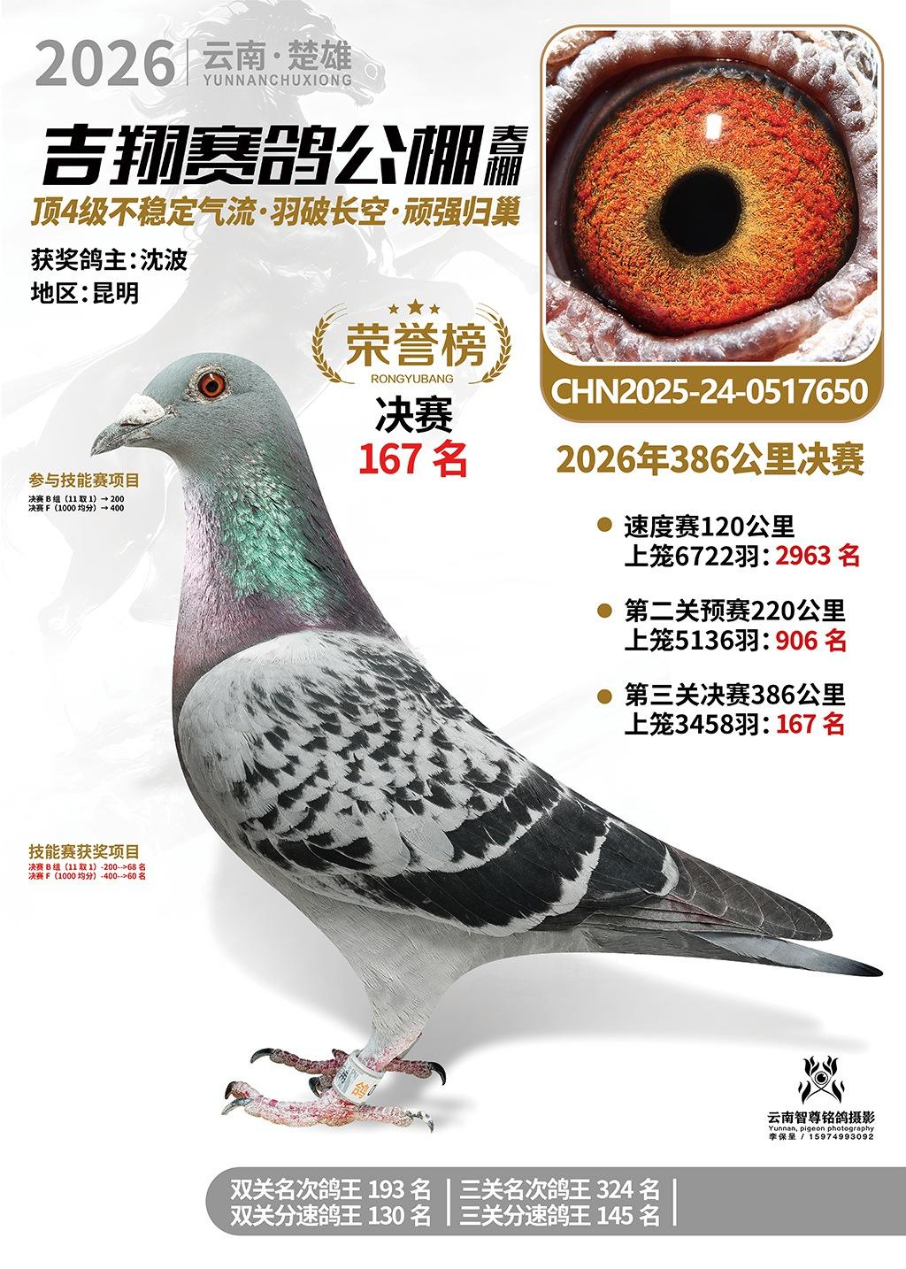 楚雄吉翔公棚(春棚)2026年386公里决赛获奖鸽欣赏