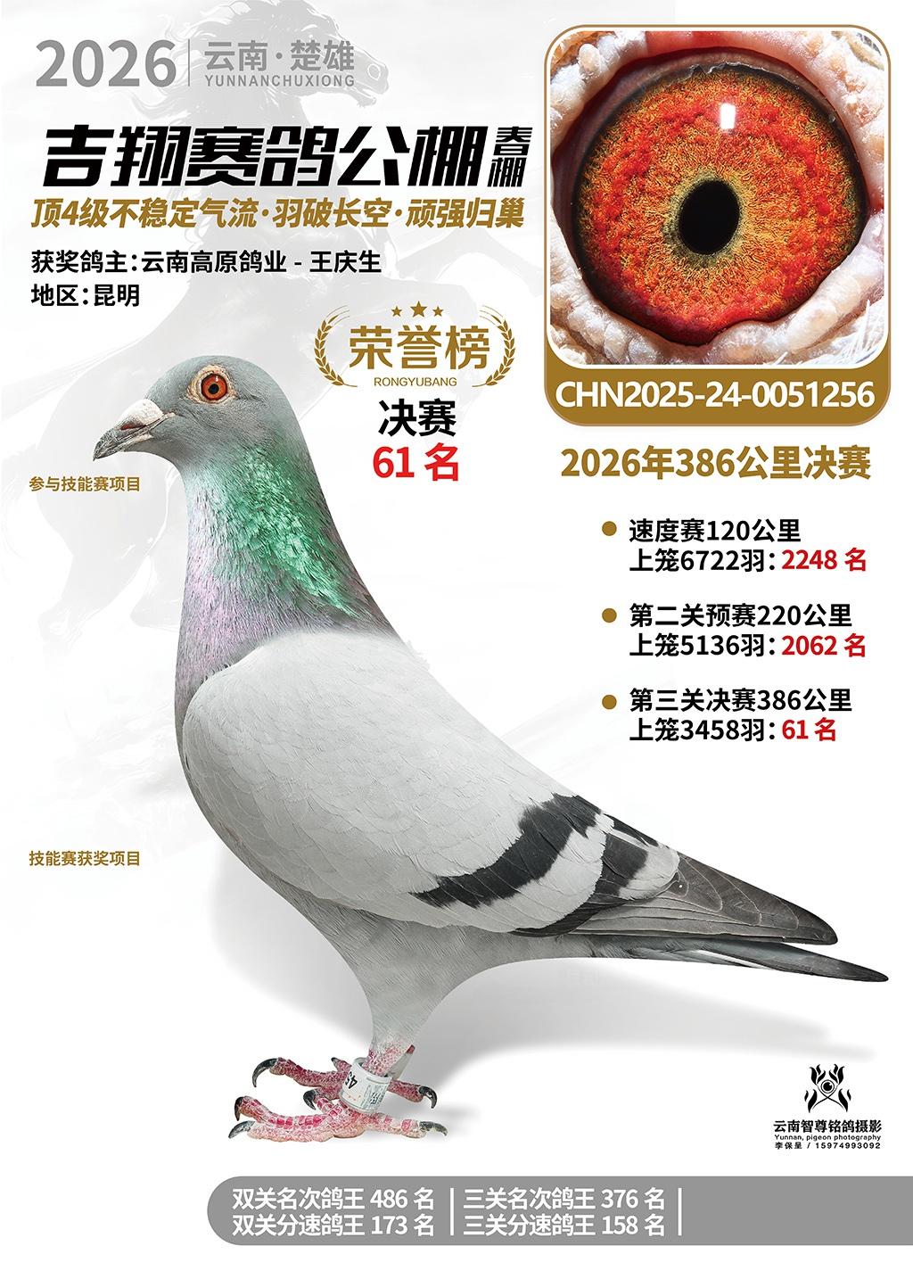 楚雄吉翔公棚(春棚)2026年386公里决赛获奖鸽欣赏
