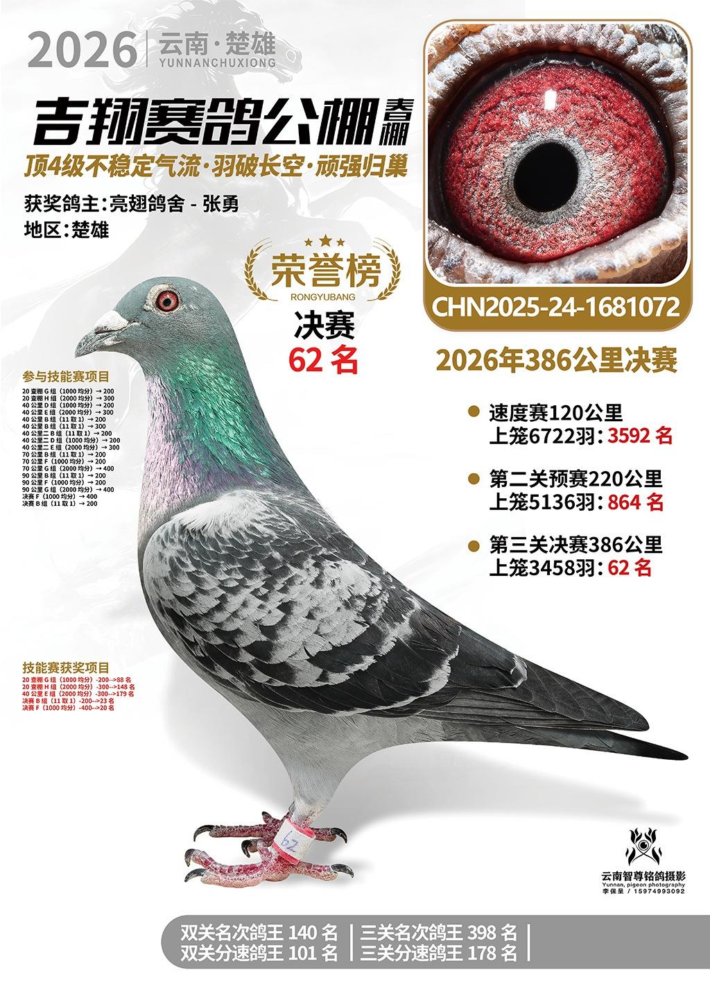 楚雄吉翔公棚(春棚)2026年386公里决赛获奖鸽欣赏