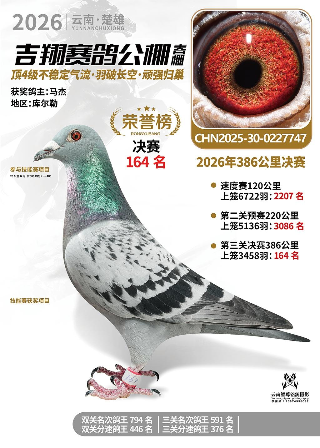 楚雄吉翔公棚(春棚)2026年386公里决赛获奖鸽欣赏