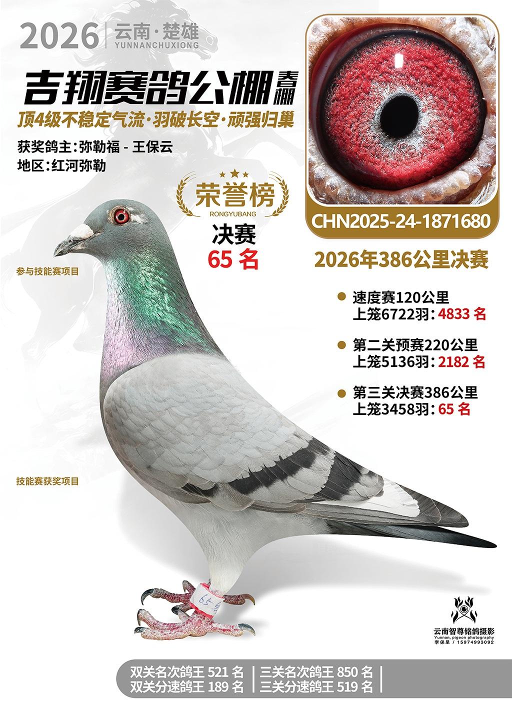 楚雄吉翔公棚(春棚)2026年386公里决赛获奖鸽欣赏