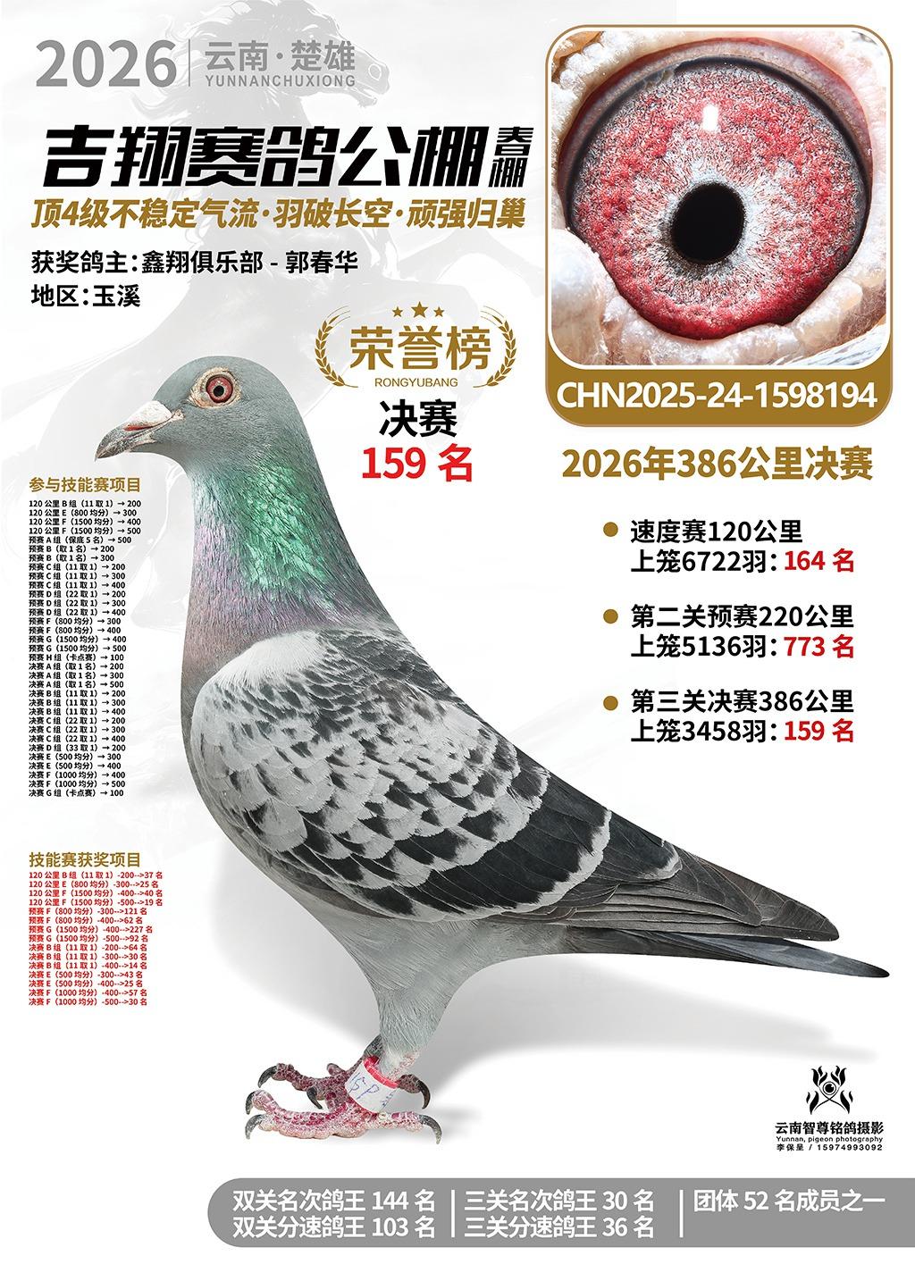 楚雄吉翔公棚(春棚)2026年386公里决赛获奖鸽欣赏