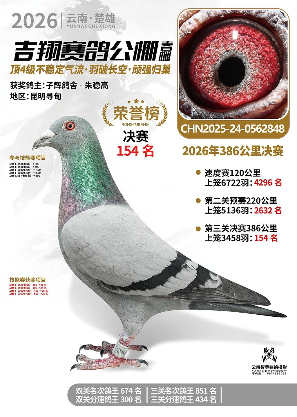 楚雄吉翔公棚(春棚)2026年386公里决赛获奖鸽欣赏