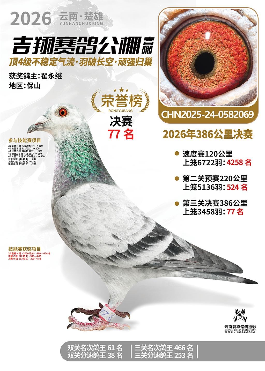 楚雄吉翔公棚(春棚)2026年386公里决赛获奖鸽欣赏