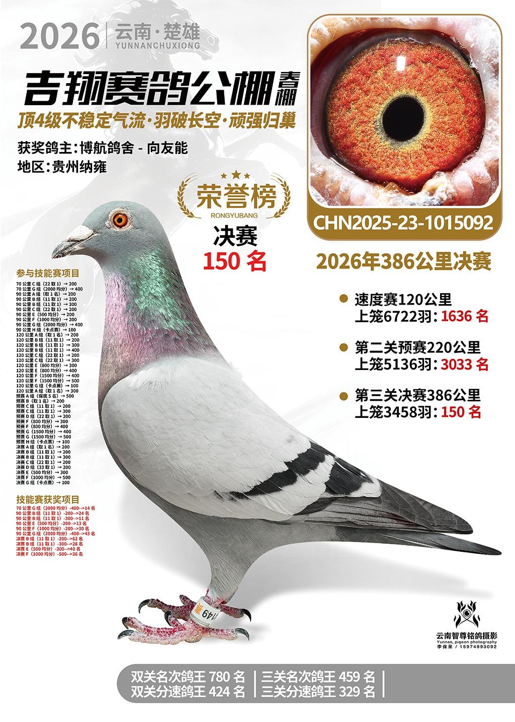 楚雄吉翔公棚(春棚)2026年386公里决赛获奖鸽欣赏