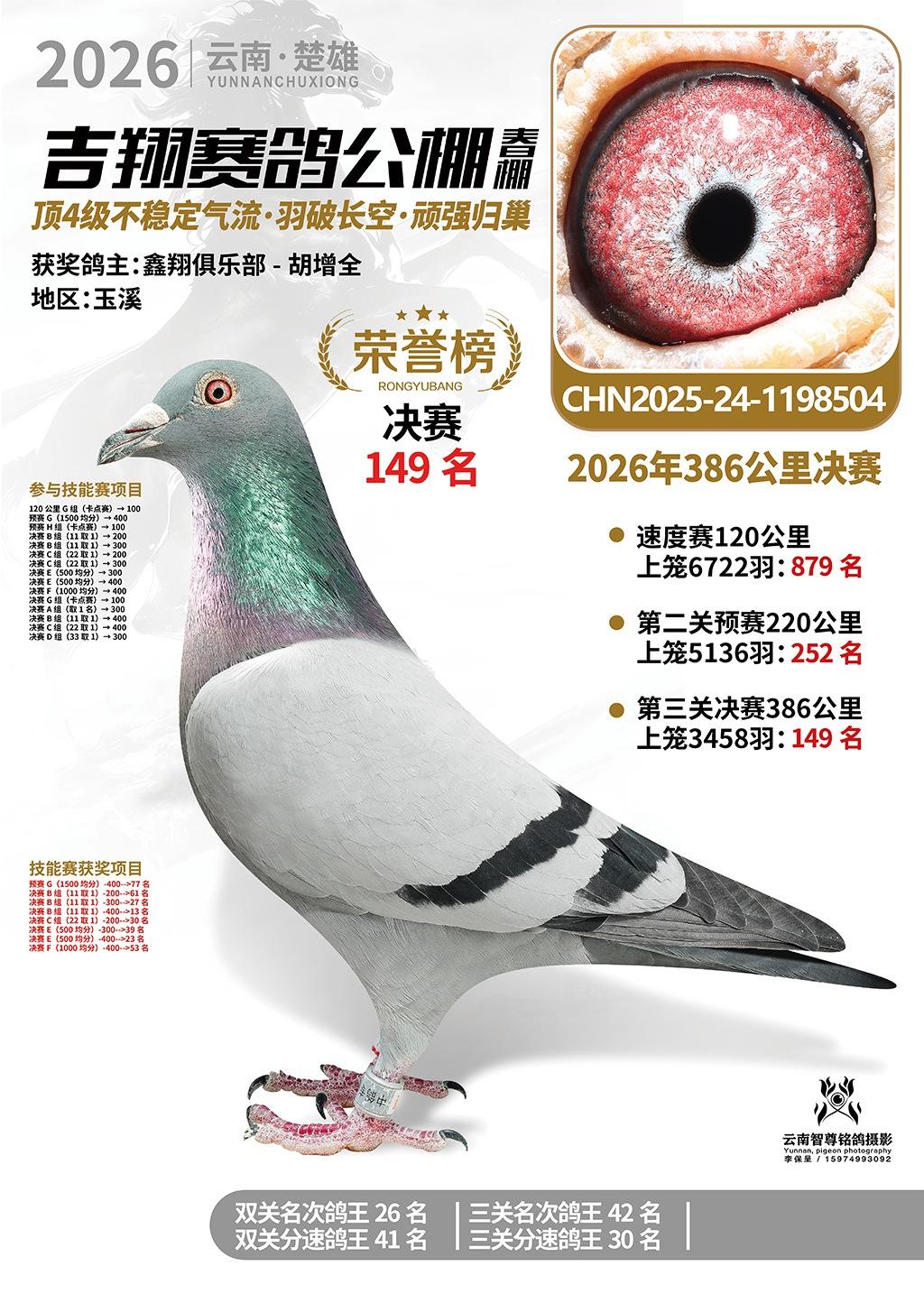 楚雄吉翔公棚(春棚)2026年386公里决赛获奖鸽欣赏