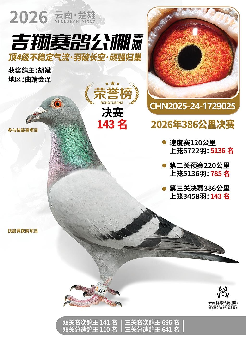 楚雄吉翔公棚(春棚)2026年386公里决赛获奖鸽欣赏