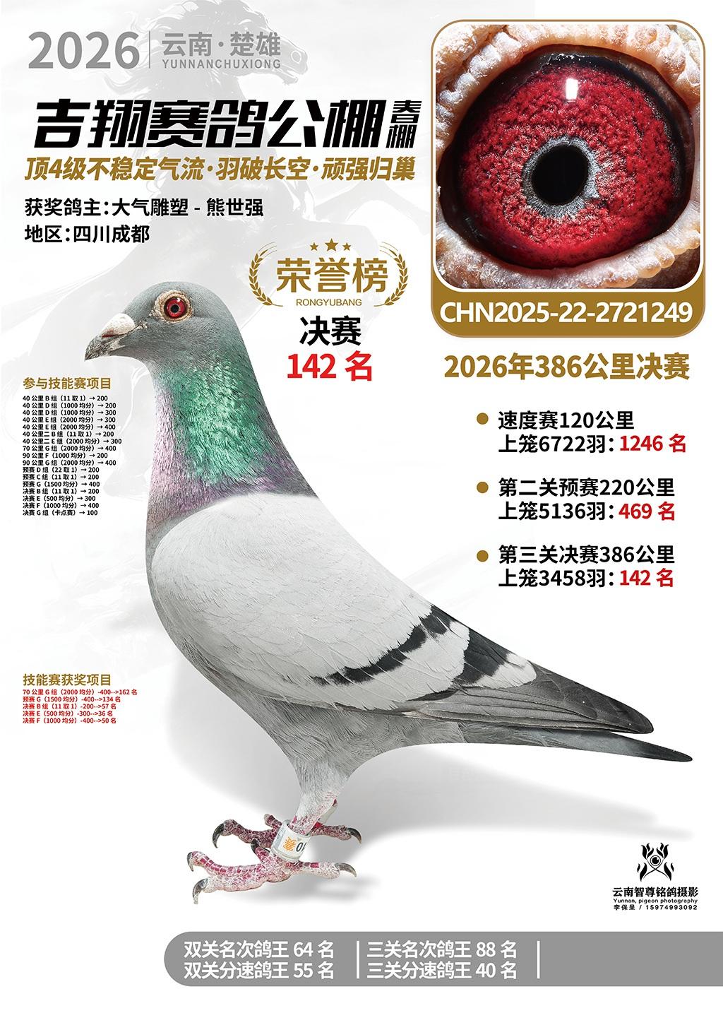 楚雄吉翔公棚(春棚)2026年386公里决赛获奖鸽欣赏