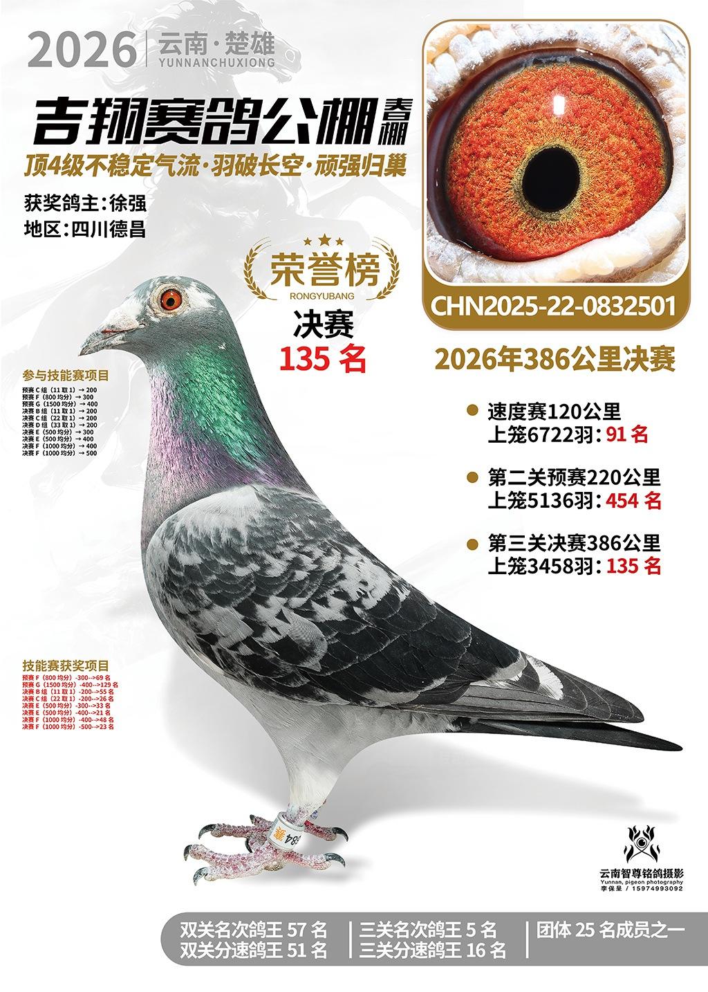 楚雄吉翔公棚(春棚)2026年386公里决赛获奖鸽欣赏