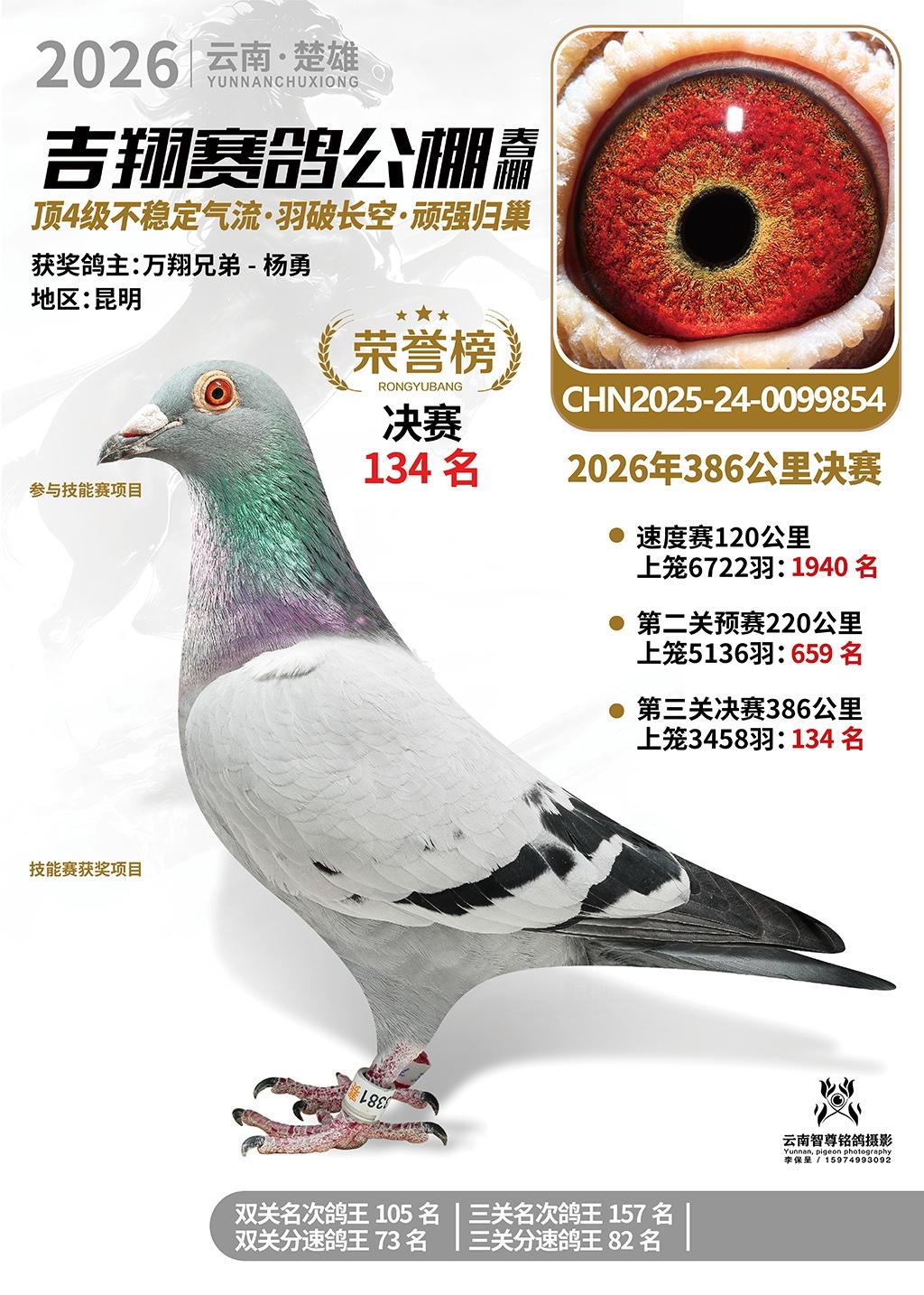 楚雄吉翔公棚(春棚)2026年386公里决赛获奖鸽欣赏