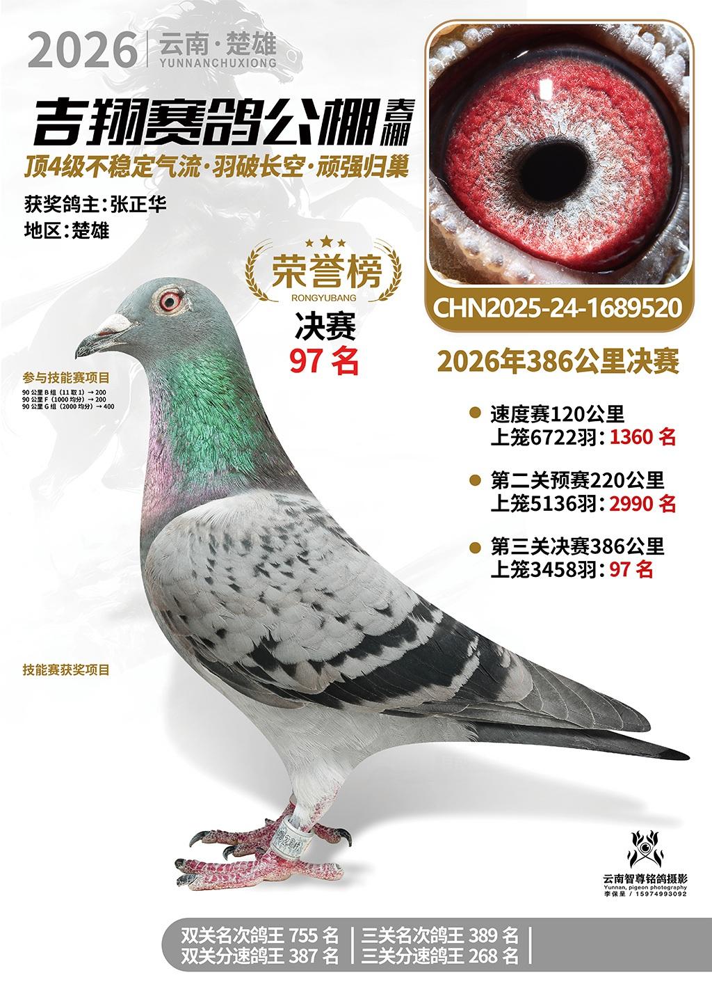 楚雄吉翔公棚(春棚)2026年386公里决赛获奖鸽欣赏