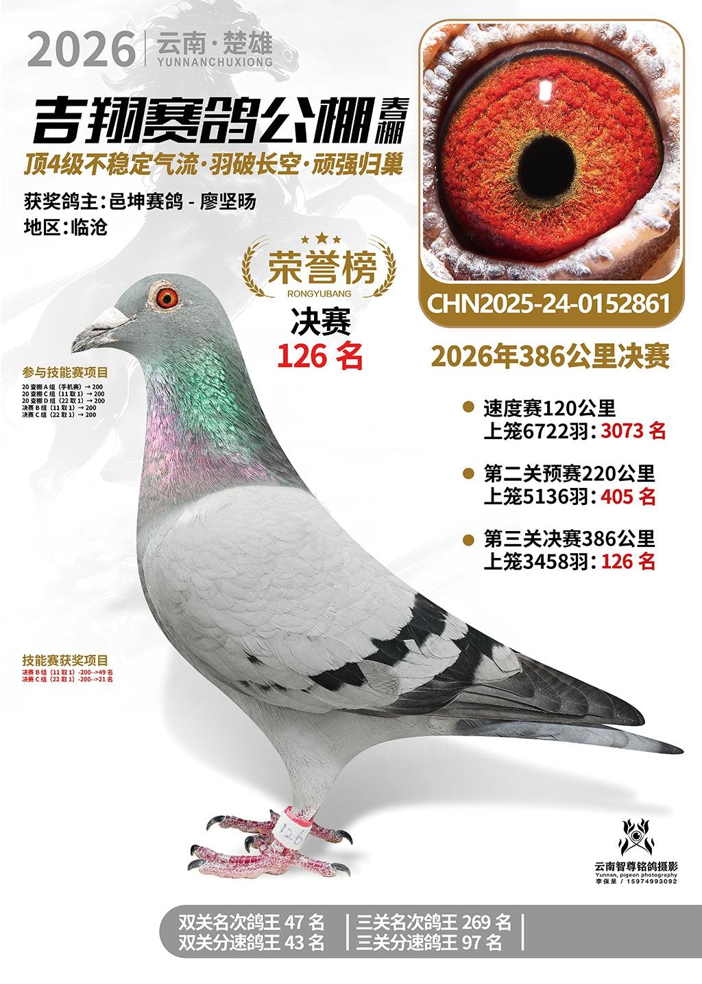 楚雄吉翔公棚(春棚)2026年386公里决赛获奖鸽欣赏