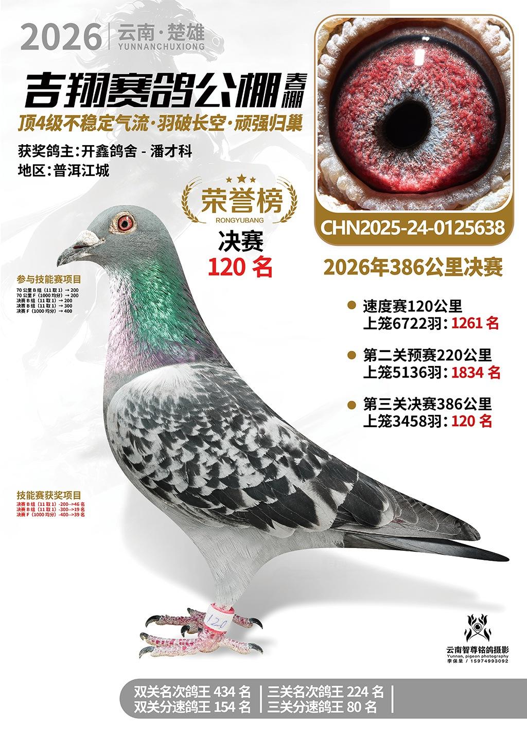 楚雄吉翔公棚(春棚)2026年386公里决赛获奖鸽欣赏