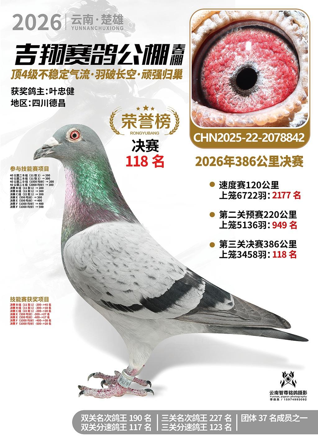 楚雄吉翔公棚(春棚)2026年386公里决赛获奖鸽欣赏