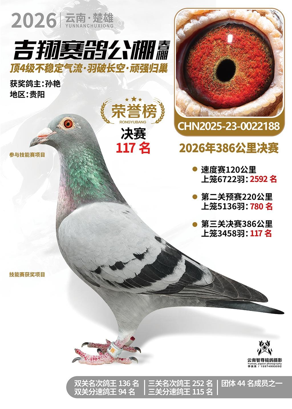 楚雄吉翔公棚(春棚)2026年386公里决赛获奖鸽欣赏