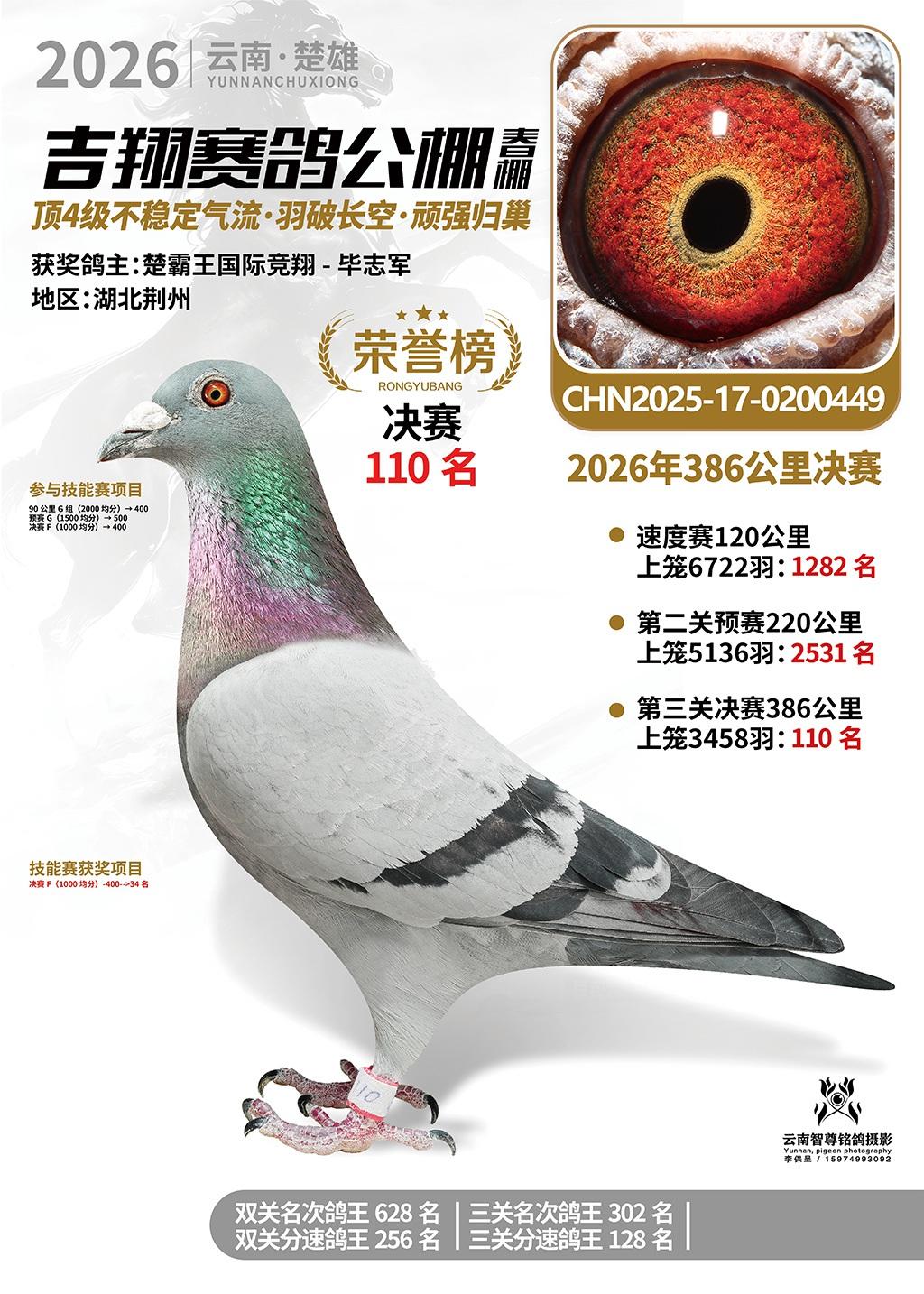 楚雄吉翔公棚(春棚)2026年386公里决赛获奖鸽欣赏