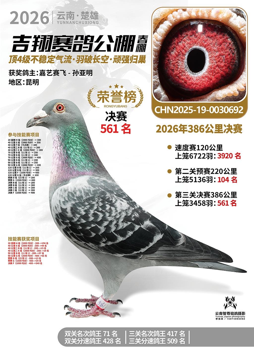 楚雄吉翔公棚(春棚)2026年386公里决赛鸽主自费拍照