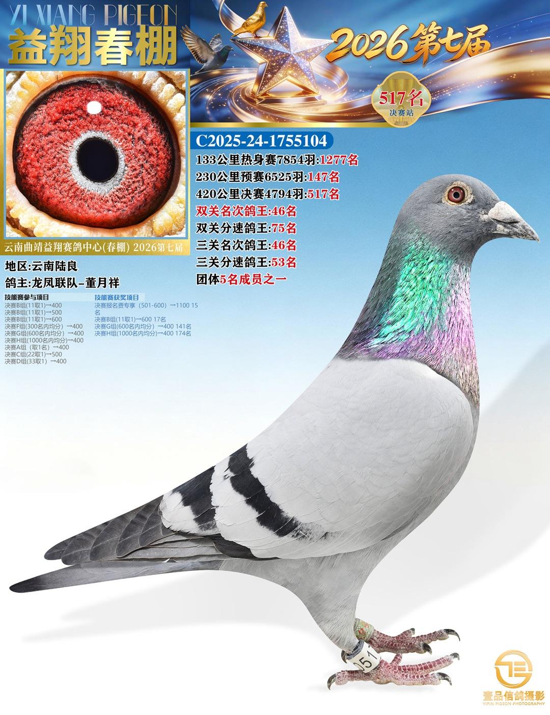 | 鸽主姓名 | 龙凤联队-董月祥 |