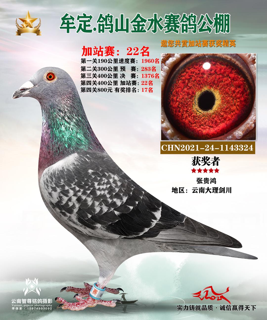 云南牟定鸽山金水信鸽养殖有限公司加站赛获奖鸽