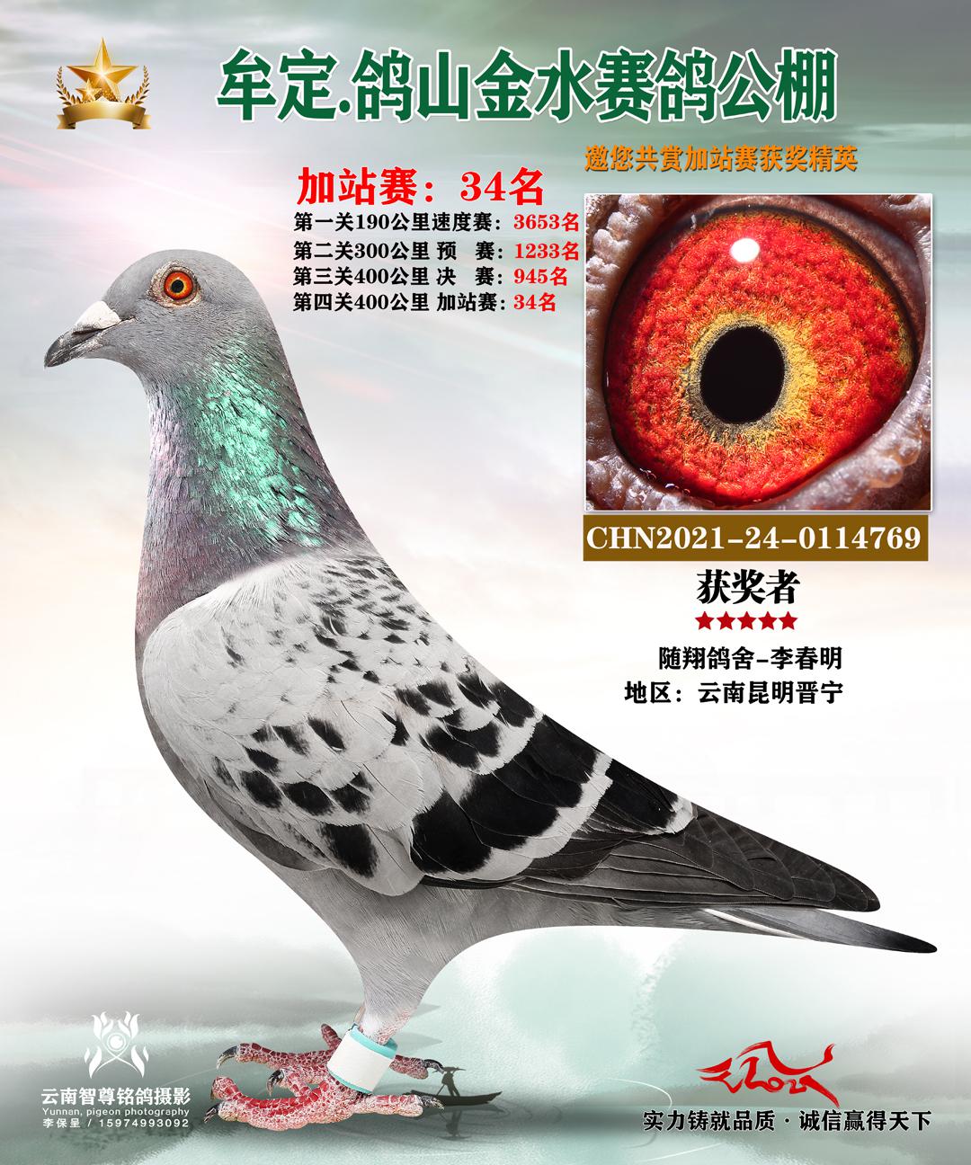 云南牟定鸽山金水信鸽养殖有限公司加站赛获奖鸽