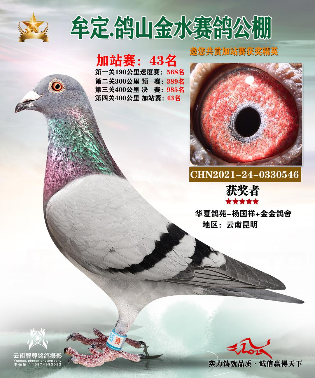 云南牟定鸽山金水信鸽养殖有限公司加站赛获奖鸽