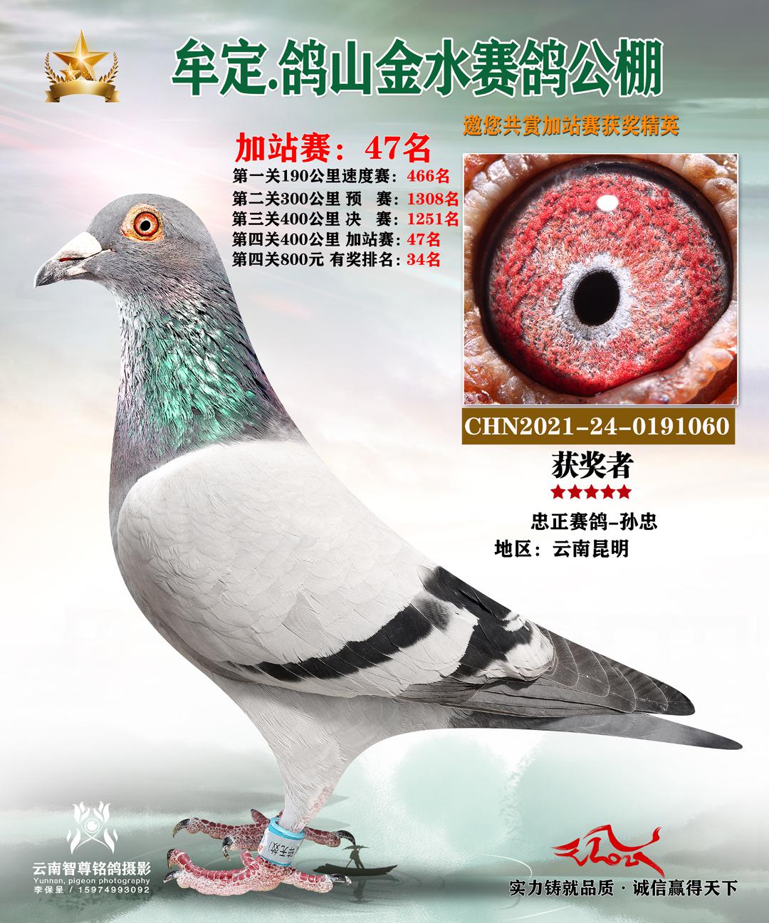 云南牟定鸽山金水信鸽养殖有限公司加站赛获奖鸽