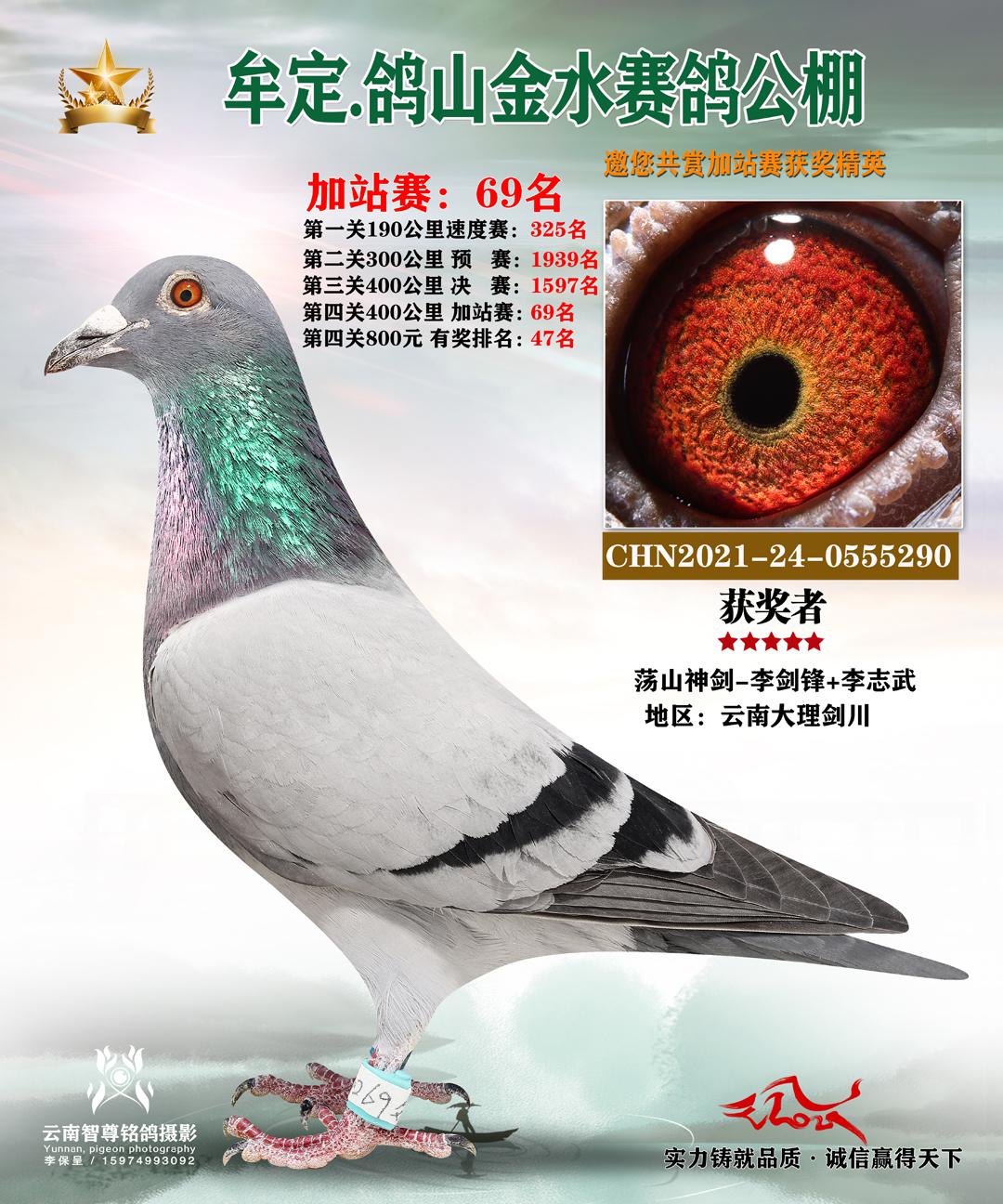 云南牟定鸽山金水信鸽养殖有限公司加站赛获奖鸽