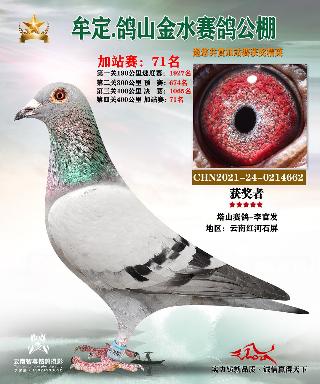云南牟定鸽山金水信鸽养殖有限公司加站赛获奖鸽