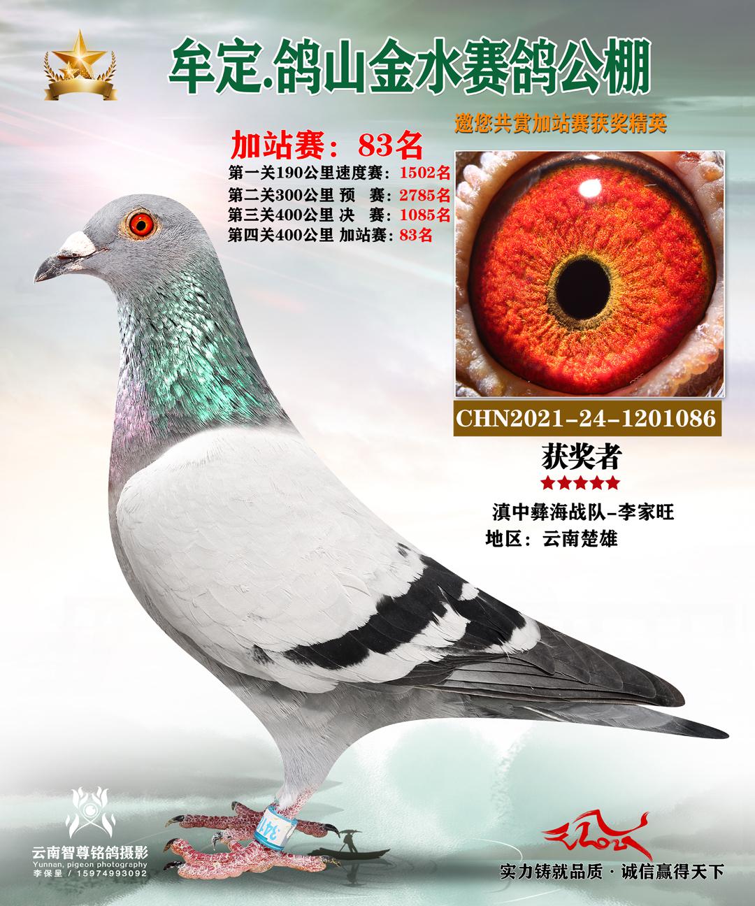 云南牟定鸽山金水信鸽养殖有限公司加站赛获奖鸽