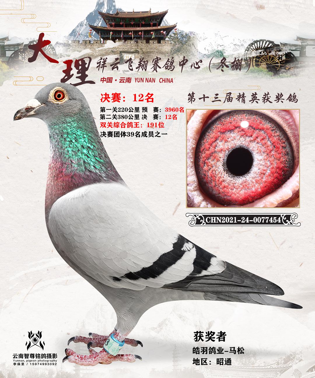 云南大理祥云飞翔赛鸽中心决赛获奖鸽