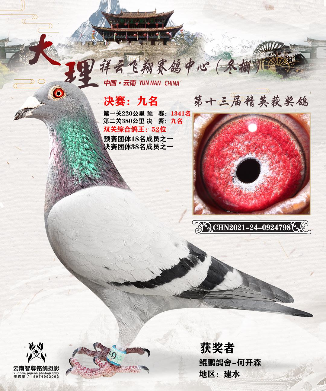 云南大理祥云飞翔赛鸽中心决赛获奖鸽