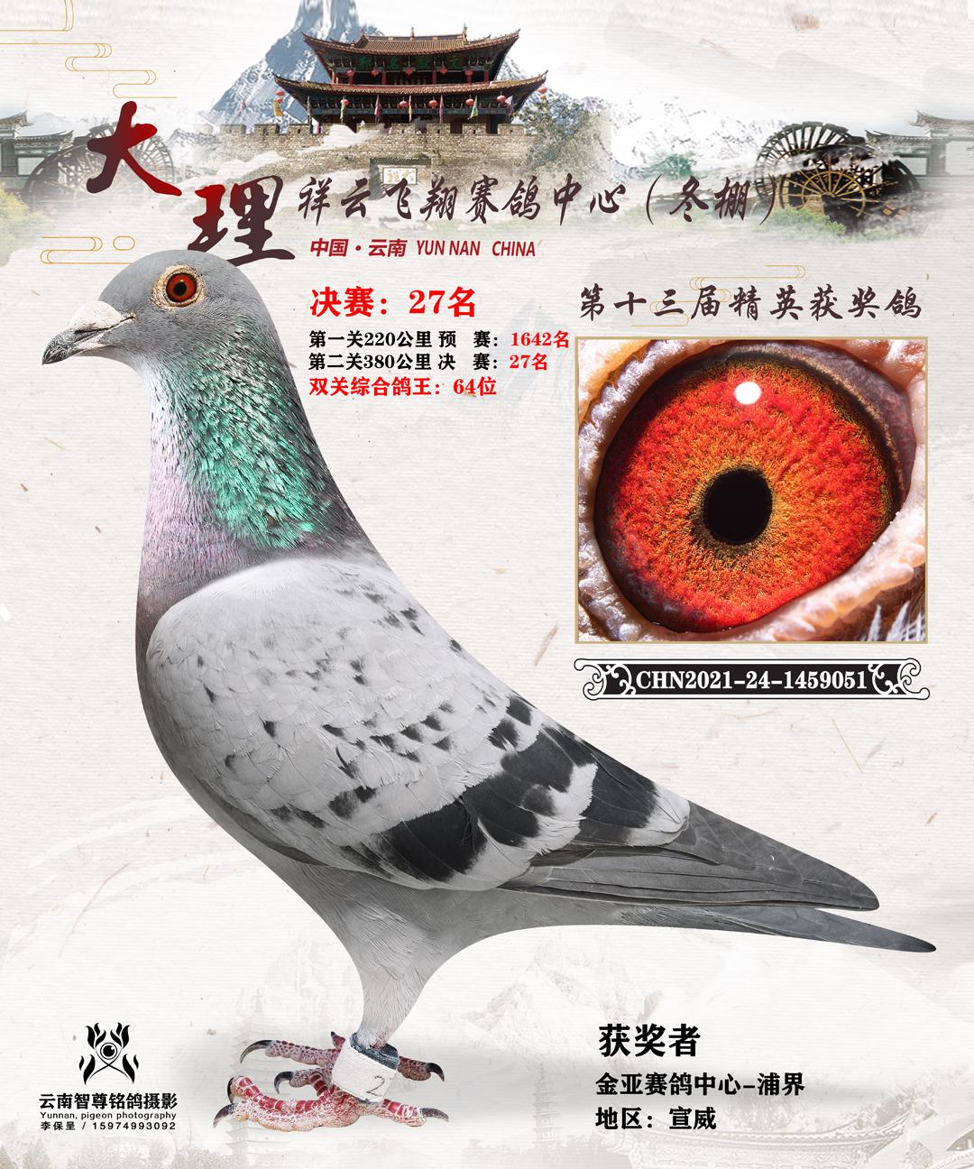 云南大理祥云飞翔赛鸽中心决赛获奖鸽