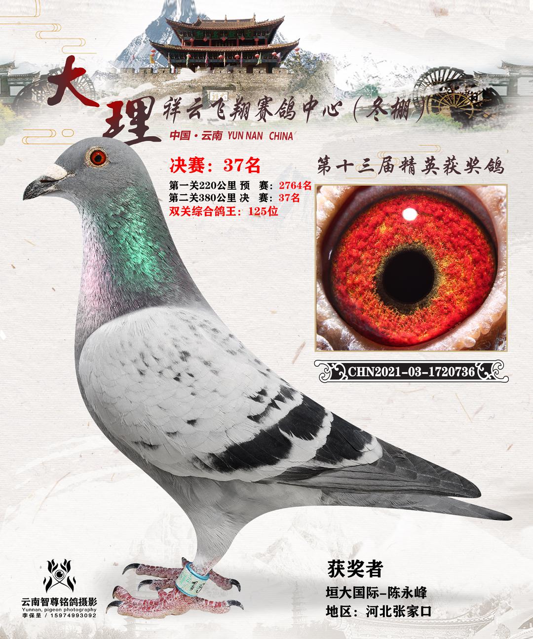 云南大理祥云飞翔赛鸽中心决赛获奖鸽