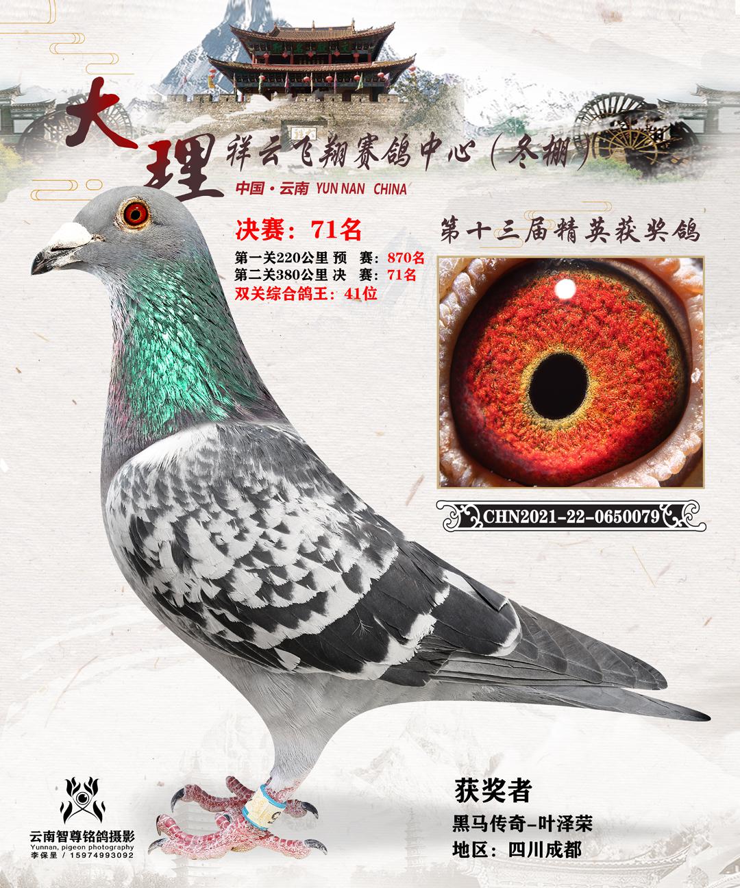 云南大理祥云飞翔赛鸽中心决赛获奖鸽