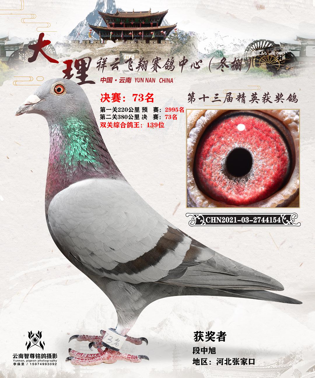 云南大理祥云飞翔赛鸽中心决赛获奖鸽