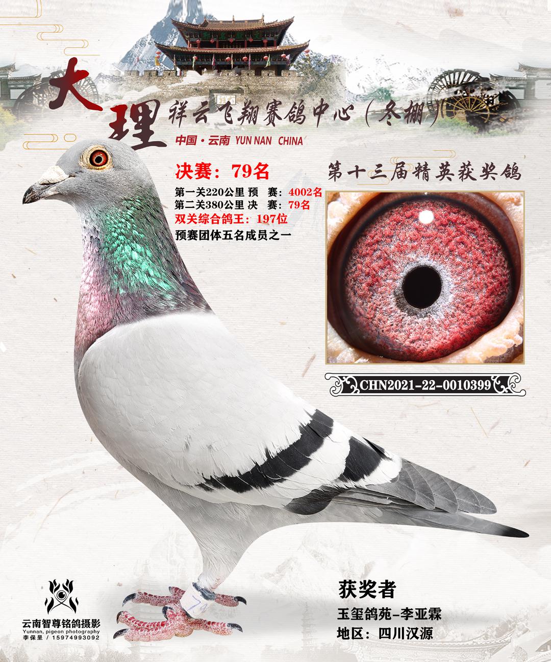 云南大理祥云飞翔赛鸽中心决赛获奖鸽