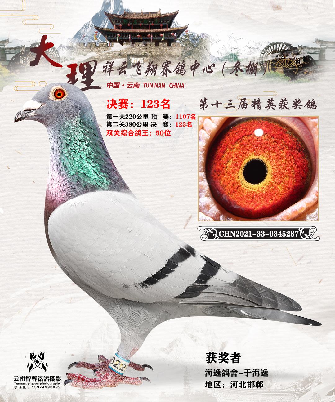 云南大理祥云飞翔赛鸽中心决赛获奖鸽