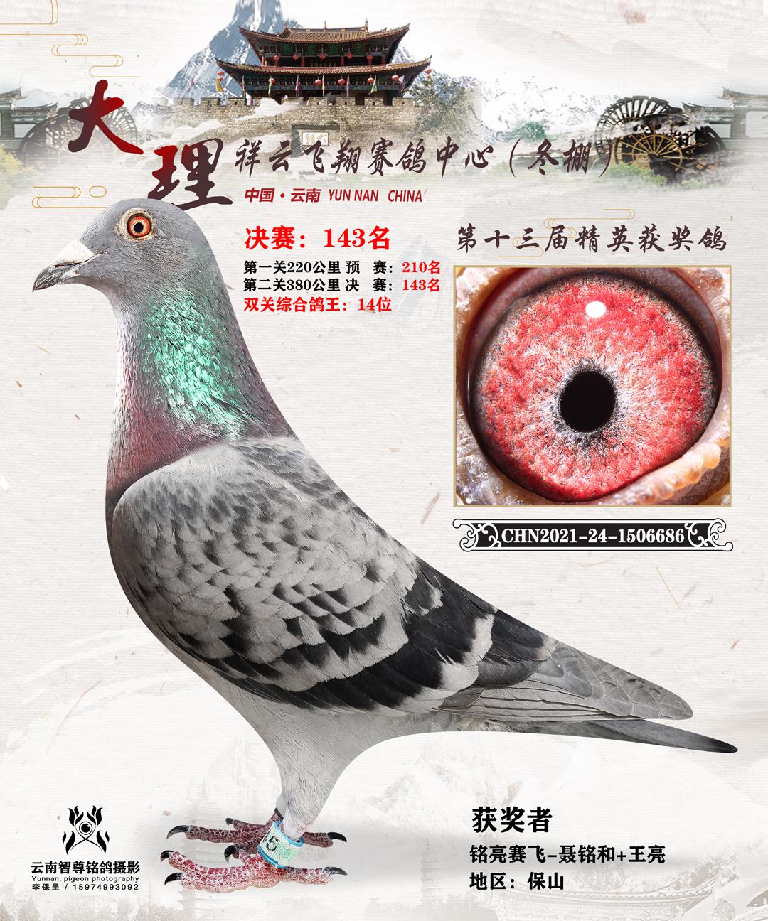 云南大理祥云飞翔赛鸽中心决赛获奖鸽
