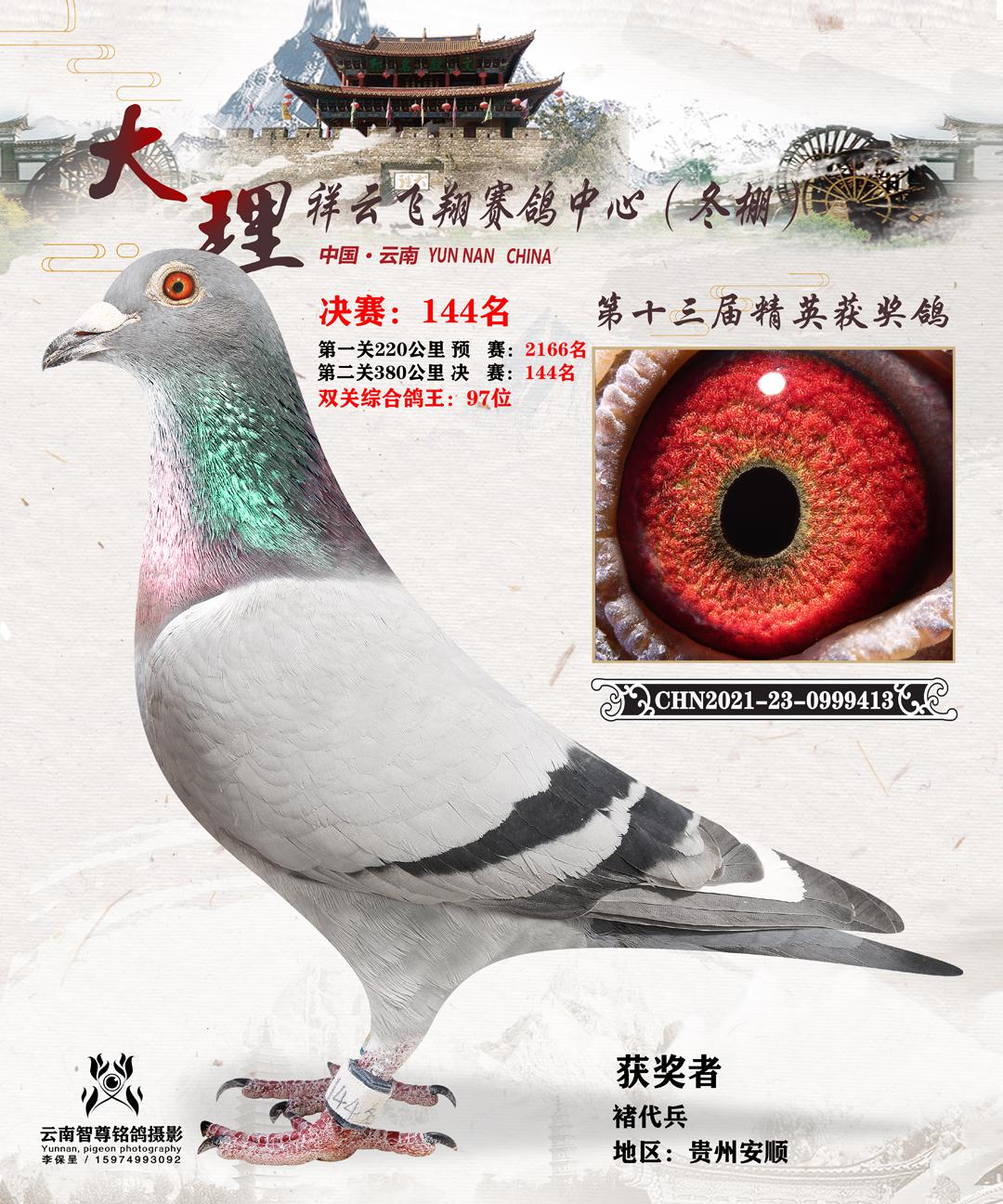 云南大理祥云飞翔赛鸽中心决赛获奖鸽