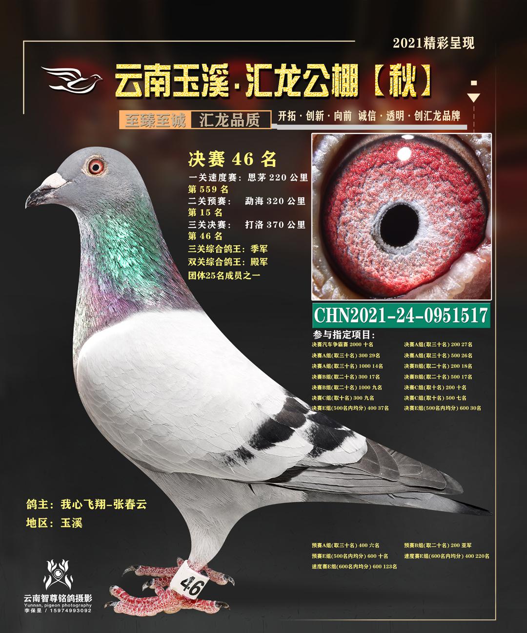 云南玉溪汇龙公棚决赛获奖未加赛获奖鸽