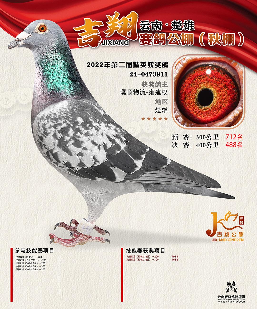 | 序号 | 标题 | 名次 | 归巢时间 | 分速 | 归巢羽数 |