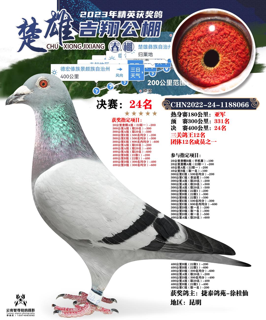 | 序号 | 标题 | 名次 | 归巢时间 | 分速 | 归巢羽数 |