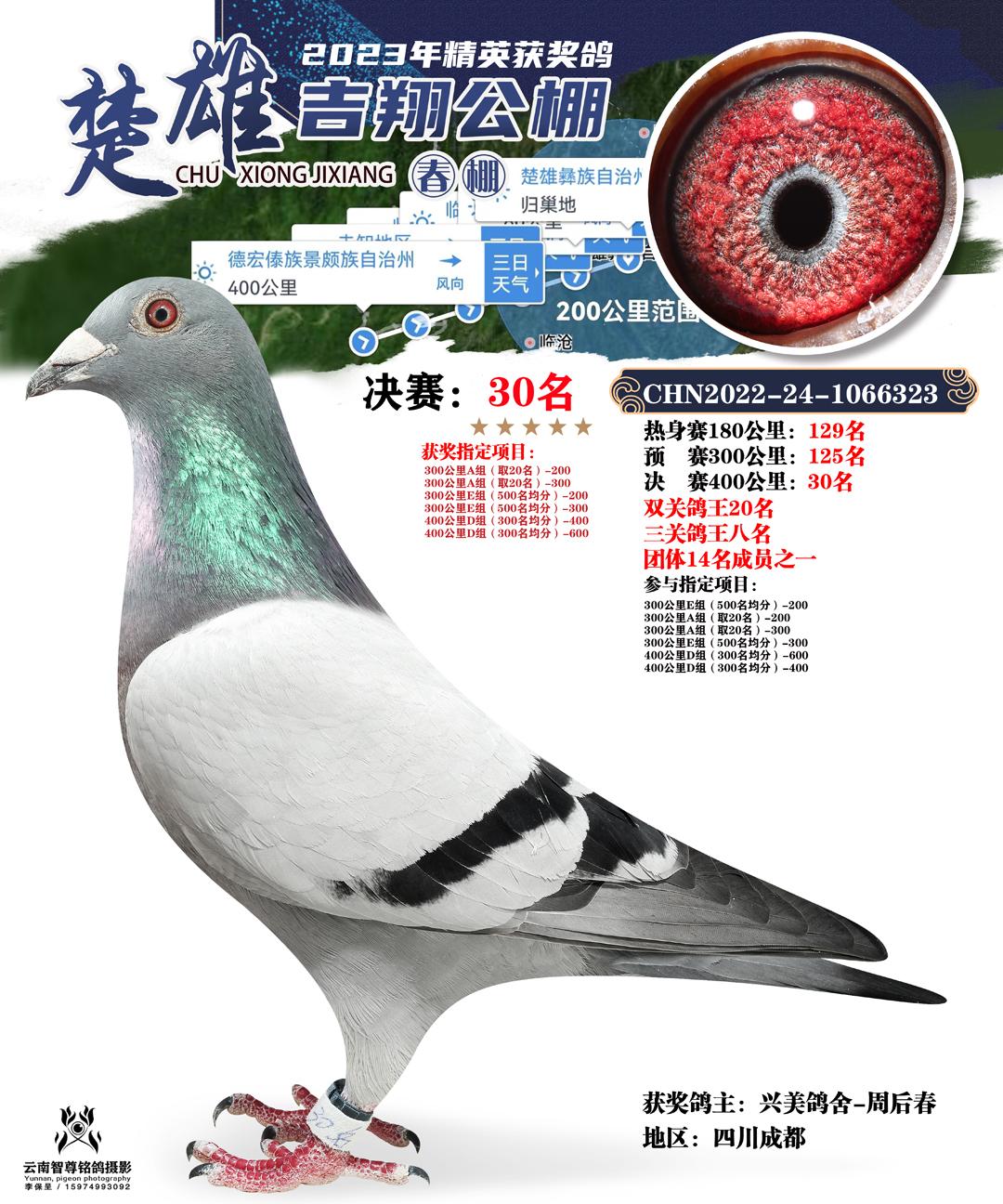 云南楚雄吉翔养殖有限公司(春棚) 2023年(第二届)400公里决赛获奖鸽
