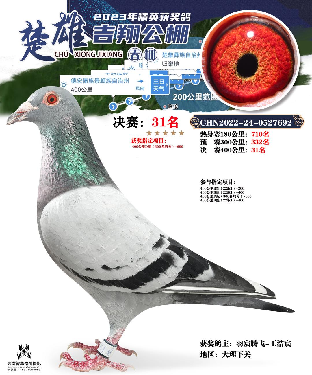 云南楚雄吉翔养殖有限公司(春棚) 2023年(第二届)400公里决赛获奖鸽