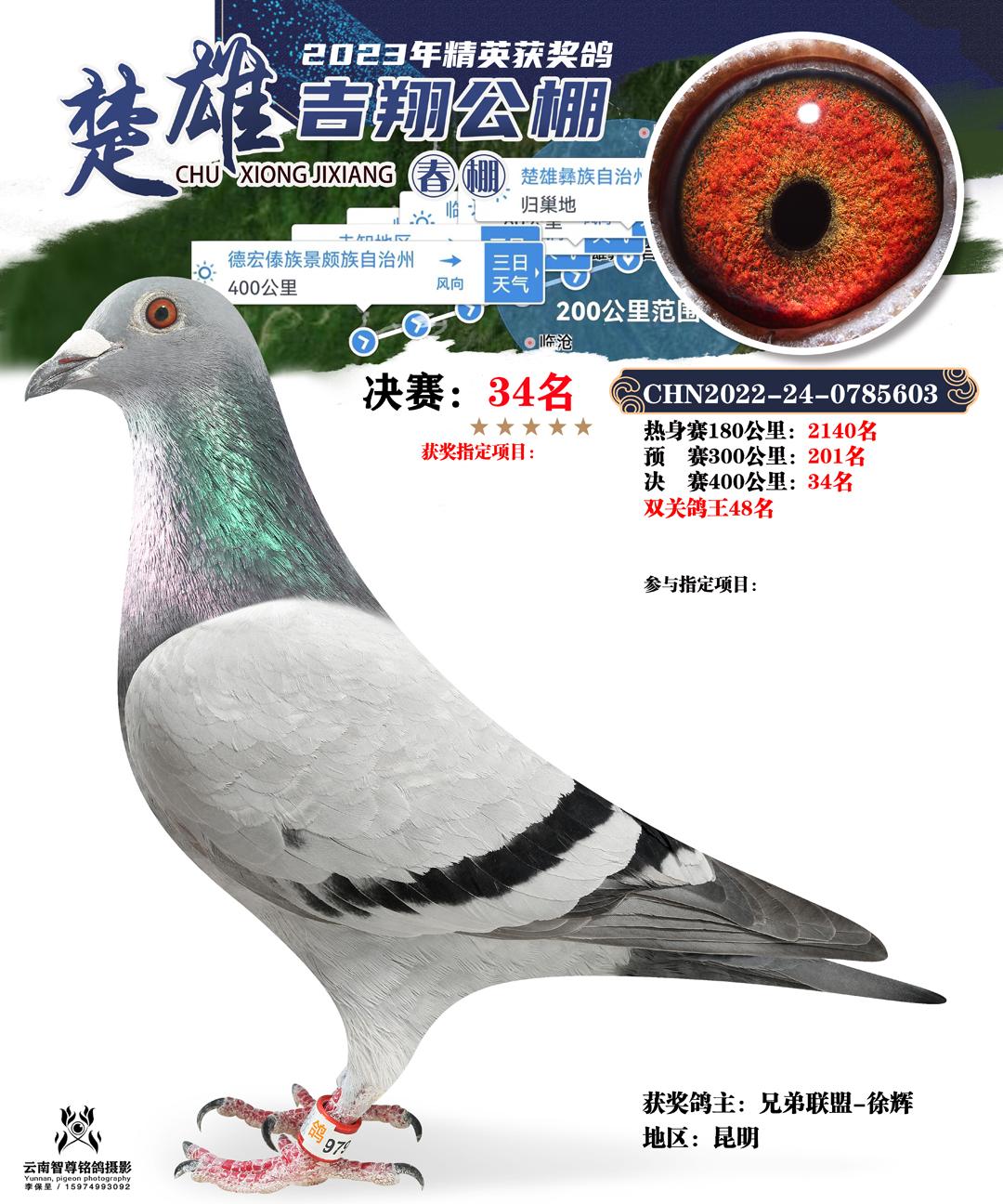 云南楚雄吉翔养殖有限公司(春棚) 2023年(第二届)400公里决赛获奖鸽