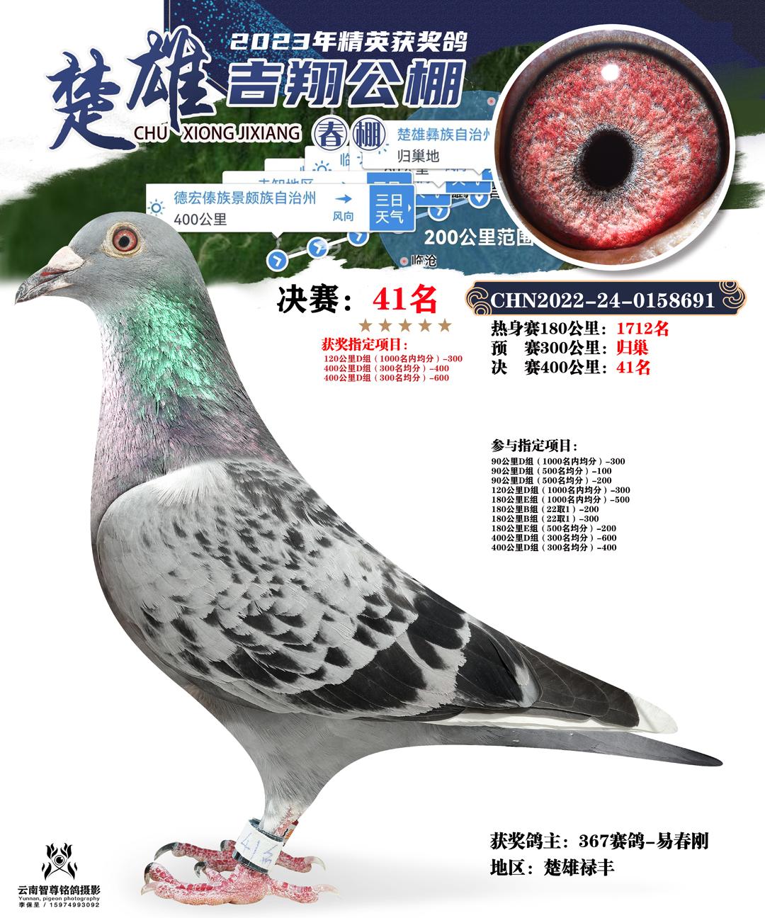 云南楚雄吉翔养殖有限公司(春棚) 2023年(第二届)400公里决赛获奖鸽