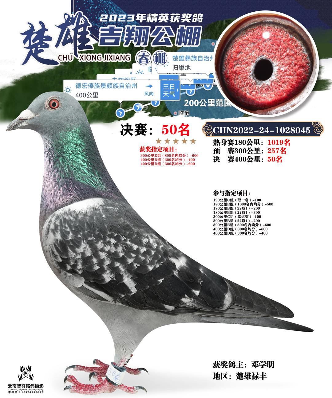 | 序号 | 标题 | 名次 | 归巢时间 | 分速 | 归巢羽数 |