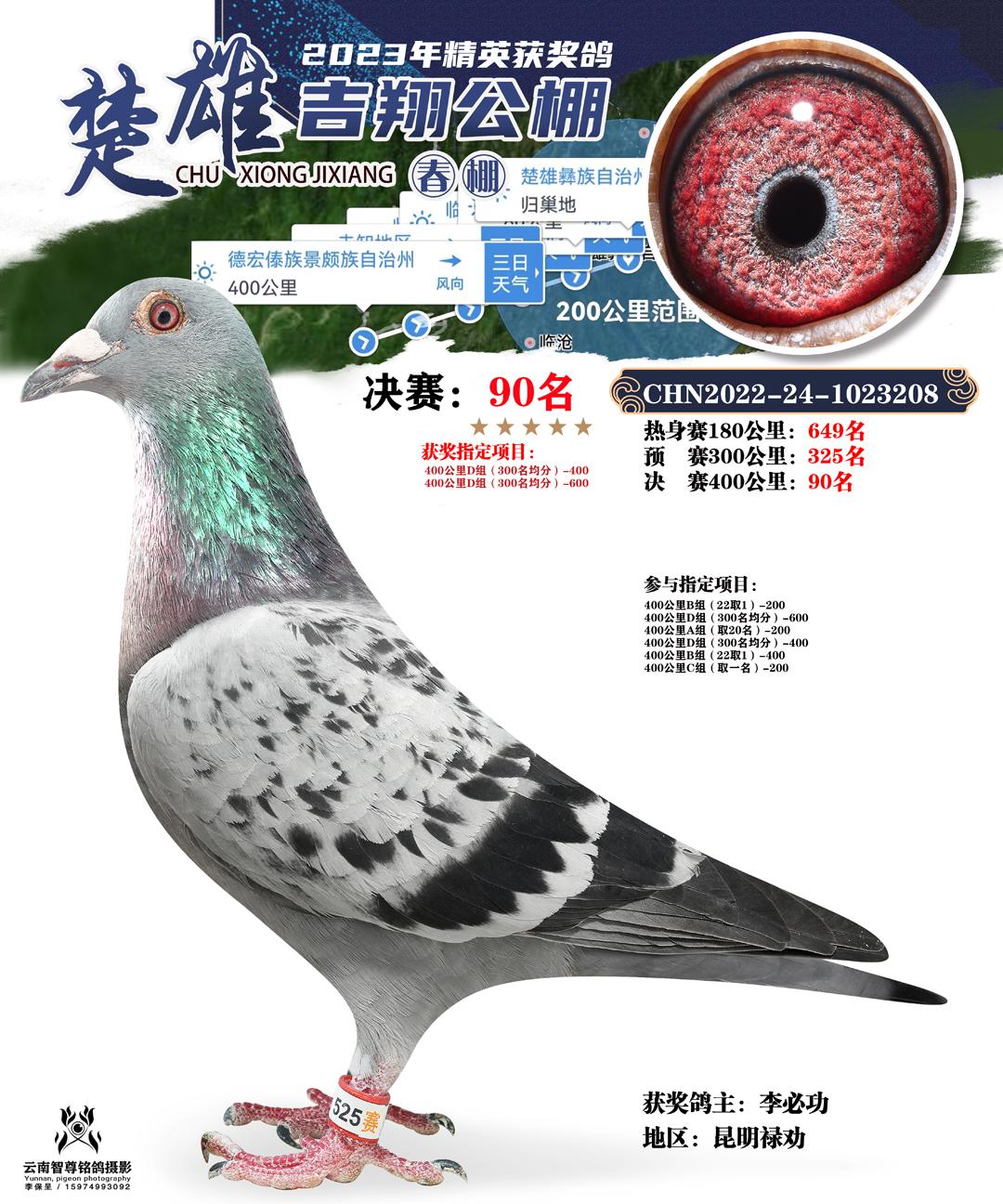 云南楚雄吉翔养殖有限公司(春棚) 2023年(第二届)400公里决赛获奖鸽