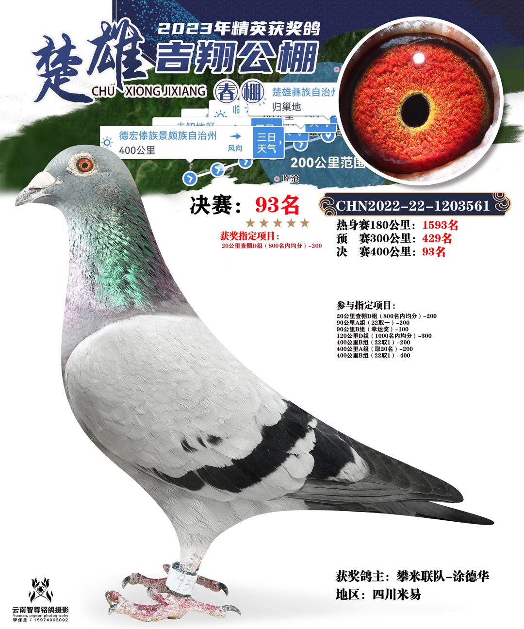 云南楚雄吉翔养殖有限公司(春棚) 2023年(第二届)400公里决赛获奖鸽